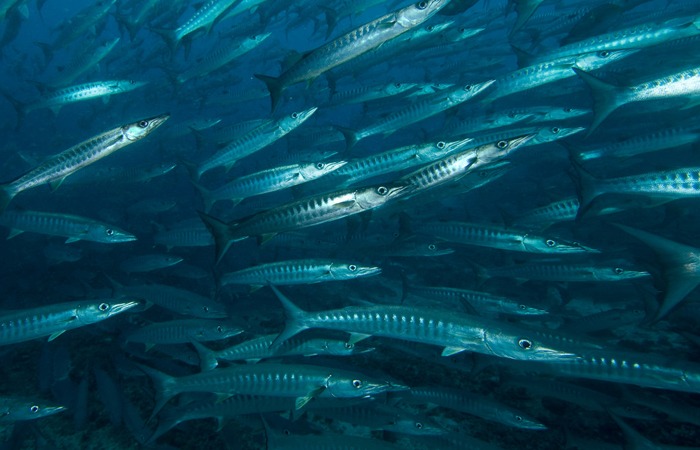 Lo mejor de la inmersión fue sin duda el encuentro con el gran banco de barracudas, donde debía haber unos 1.000 ejemplares por lo menos.
